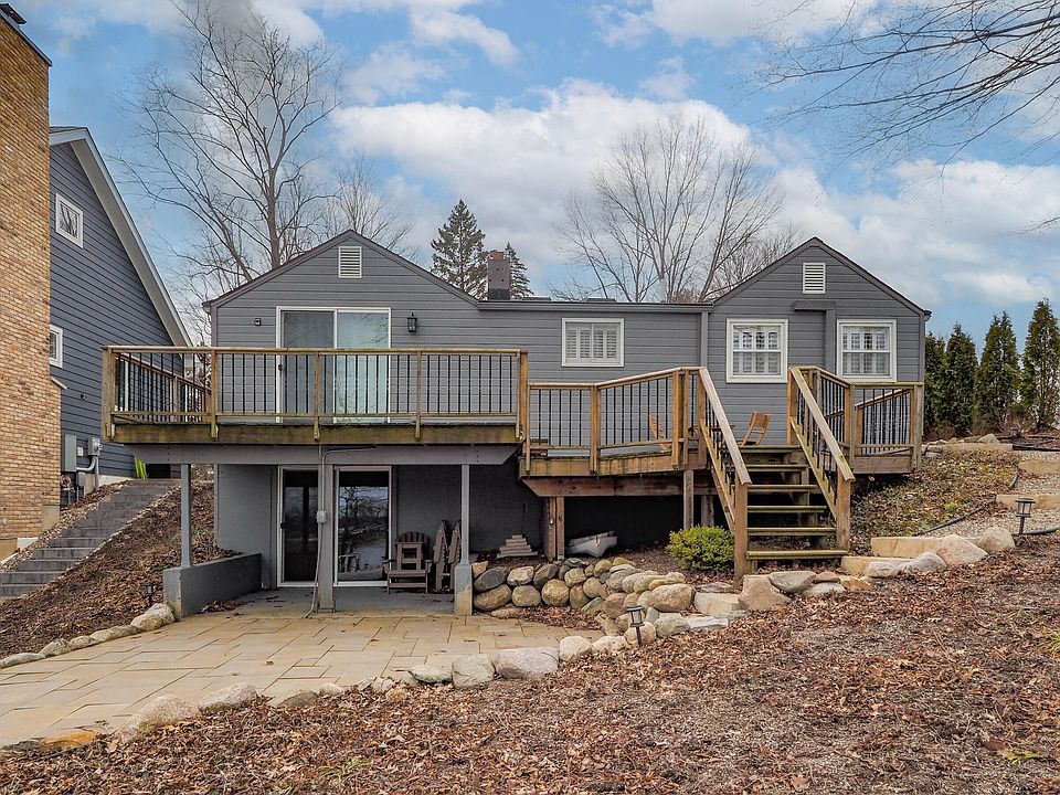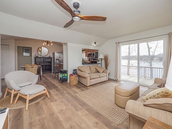 Welcome to all sports, Harwood Lake! Get ready to enjoy boating, fishing, swimming, & kayaking this summer! 2 bedroom, 2 bath bungalow with a brand new 4 car garage, 51 FT of lake frontage with hard, sandy bottom. You will love the open concept living room & kitchen with beautifully updated flooring, skylights, granite countertops, a snack bar, and an eating area. Enjoy incredible views from the living room overlooking the lake, with access to the back deck. The two bedrooms & a full bath that complete the main floor. The walkout basement offers a family room with a wood-burning stove, a full bath, laundry with a washer, dryer & ample storage space. The beautiful stone patio offers a great space for outdoor entertaining, beautiful landscaping with convenient steps leading down to the lake. This home boasts a spacious lot complete with a brand new 30 FT 4 car garage / Pole Barn with a 13 FT oversized garage door. Aluminum dock stays. If you are ready for lake living, schedule a showing today!