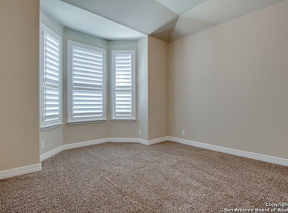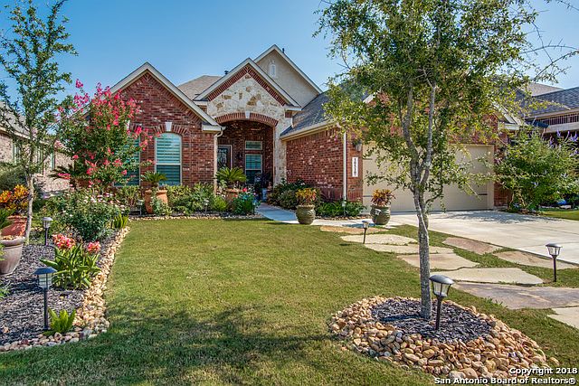 Fall in love with this meticulously cared for one story in Triana! Experience the best of Helotes living with community pool and an honored school in walking distance. Extensive upgrades include 18 inch tile flooring and custom plantation shutters! 4th bed can be used as office! The open plan shows beautiful cabinets, thick granite tops, stainless steel gas cooktop and double oven. Beautiful views of HOA maintained greenbelt from a covered patio or bay windows. Extended garage for more storage! See it!