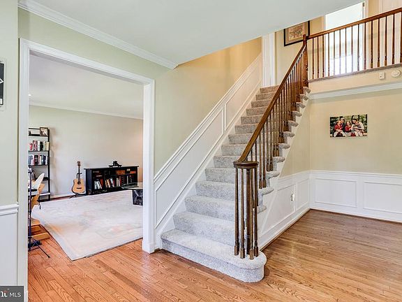 Spacious home with pretty hardwood flooring in the foyer, living room, dining room and main level library. It has updated stainless steel appliances (2019) in the kitchen along with a sun-filled breakfast room with a bay window.There is a first floor library that could also be a 5th bedroom. It has new carpet (2019) in first floor family room with wood burning fireplace and sliding glass door to large patio. The upper level features a large master suite with an updated master bathroom. It has 4 additional large bedrooms all with new carpet in April 2019. Great use of lower level with rec room, craft room and man cave / wine room. Lower level has walk up exit to side yard and newly fenced rear yard in 2018. Water heater is new as of July 2018. It has over 4100 square feet of finished space. Easy access to Baltimore and Washington DC. Minutes away from shopping and dining at Maple Lawn. Close to I95, B/W Parkway, RT 29, ICC and much more.