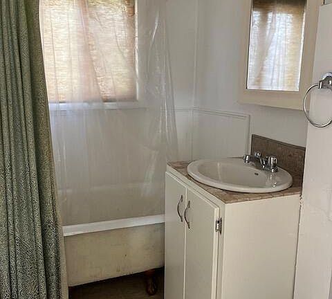 Nice bungalow with private fenced yard. Simulated wood flooring, fresh paint, nice size kitchen with eating area. Large bedroom. Rear door leads to enclosed private patio area. Stove & Refrigerator included, window A/C. Offstreet parking.