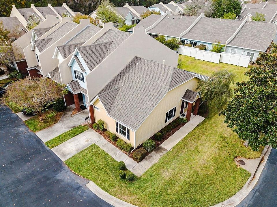 FHA assumable rate of 4.125%! Beautifully maintained 2BR/2BA end-unit townhome (not a condo) in GATED community of Williamsburg in prime NW Gainesville location off 39th Ave & 98th St and a skip & hop to I-75 corridor! Zoned for top-rated Meadowbrook Elem, Fort Clarke MS & Buchholz HS. This charming cottage includes updates like 2019 roof, 2022 LVP floors in main areas, 2022 bedroom carpets, updated premium Andersen windows, 2018 HVAC & water heater. Kitchen features deluxe stainless steel appliances that include new refrigerator, brand-new range, newer DW, microwave, new big disposal, deluxe deep sink (with cutting board/strainer) & upgraded beautiful faucet. Security system w/ cameras, sensors & smart switches stay. Newer washer/dryer stay as well! The front entry opens to a welcoming foyer that leads directly to a spacious dining area, great room and kitchen. Great open lay out! The dining room extends onto an oversized screened in porch that significantly enhances the living space. The owner’s suite, overlooking common area, is generously sized featuring an es-suite bath with dual vanity & walk-in shower. NEW vinyl floors to be installed in both baths before closing. Indoor laundry, plyboards in attic for some light storage. HOA $216.62/mo includes gated entry, pool, tennis, clubhouse, function rooms, fitness center, library & sauna plus exterior and grounds maintenance. Don't miss this one!