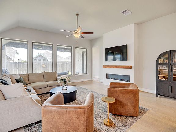 Welcome to your new home! This impressive one-story residence in the highly desired Candela community is ready for you. As you enter, you will notice a stunning grand entry with high ceilings and beautiful wooden flooring throughout. To your left, there are two bedrooms with a Jack and Jill bathroom and a third room that can be used as a study or as a fourth bedroom. As you walk into the main area, your eyes will be drawn to the chef's kitchen, featuring beautiful granite countertops and stainless-steel appliances, with a huge center island designed with the holidays in mind. Continuing into the living room, you will see a new electric fireplace, ideal for cozy movie nights. Outside, there is a perfect Texas patio with two ceiling fans, great for grilling up BBQ for the weekend game. After a long day, retreat to your primary suite, with a spacious walk-in closet and a huge freestanding tub. It won’t last long, so schedule your private tour today and see it for yourself!