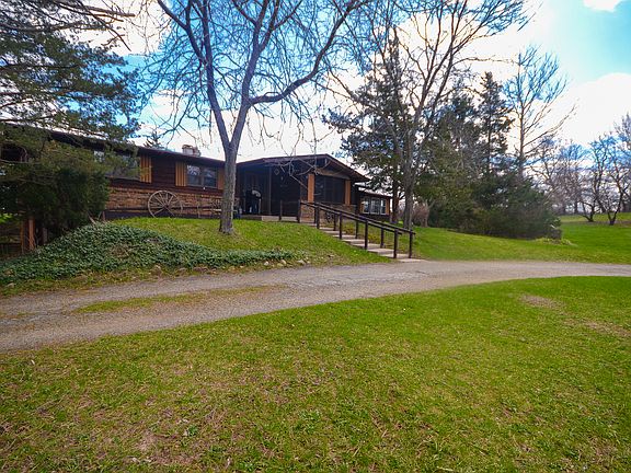 Check out our interactive 3D tour! Sprawling ranch situated on over 5 acres of property featuring 3 beds, 2 bath, 2 car garage and enormous heated 60X72 Pole Barn with 2 extra tall garage doors that can be your home auto shop, woodworking garage or whatever you desire! U-shaped turnaround driveway leads you up to the front door of this brick and cedar ranch. Enter into the foyer and be greeted by the living room and formal dining room with gleaming hardwood floors. Spacious eat in kitchen features all Stainless Steel appliances, granite c-tops, fireplace and slider to the huge property. Convenient main level laundry room leads to the large four season room with hot tub and double sliders to exterior. The two story outbuilding is nothing short of amazing- concrete poured drive leads to the huge outbuilding with 2 two-story garage doors. Poured concrete floor t-out the well lit space. This space can double as storage for your toys, woodworking shop, or home auto shop. Attached 2 car garage for parking your vehicles and add'l storage. Huge piece of property on over 5 acres. As-is. Propane tank is owned by Hicks Gas and is rented.