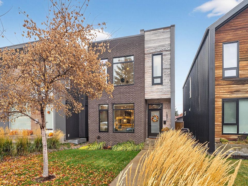 Better than brand new! This stunning contemporary infill in Forest Heights blends modern elegance with exceptional craftsmanship. Thoughtfully designed and fully finished, this air-conditioned 3+1 bedroom home features an open-concept layout with 9’ ceilings on every level. The chef’s kitchen impresses with KitchenAid appliances, gas range with steam oven, waterfall quartz island, beverage fridge and custom metal feature wall. The spacious living and dining areas are perfect for entertaining, with custom built-ins for added storage. Upstairs, the luxurious primary suite offers a large walk-in closet and ensuite with dual sinks and a separate water closet. The fully finished basement adds a rec room, 4th bedroom, and full bath. Enjoy the landscaped yard, deck, and double garage with 12’+ ceilings. Ideally located on a quiet street close to downtown and the river valley, you can simply move in and enjoy.