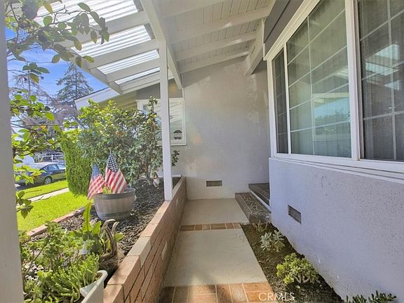 First time on the Market, this amazing corner home has four bedrooms, two bathrooms and attached two car garage in a very desirable neighborhood and is available for showing. The home is 1225 sq ft and sits on 7,854 sq ft lot with a well landscaped yard and within a concrete block fencing. As you enter the home the first thing you notice in the living room is a beautiful fireplace, large windows with views of the spacious backyard and a slab covered patio. The kitchen is dated but has been well maintained as the owners lived and loved their home for many years. It is bright with large windows that have custom window coverings. A hallway from the entry area leads to all four bedrooms and two bathrooms the master bathroom has a shower; the second bathroom has a tub. All the bedrooms have nice size windows with wooden shutters. The washer and dryer are located in the garage with a utility sink next to it and metal shelving above for storage. All appliances including refrigerator, washer and dryer will stay in the home. Nearby is Disneyland, Knott's Berry Farm, Angel Stadium, Anaheim Convention Center and Freeways 5 & 91.