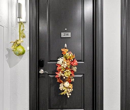 Live effortlessly in the heart of Mission Farms! Step into Condo Unit 214, where modern updates meet low-maintenance luxury. Since purchasing, the homeowners have made many updates. The refreshed kitchen boasts new stainless appliances including a refrigerator, dishwasher, trash compactor, and disposal. Relax by the restored and freshly painted fireplace or enjoy morning coffee on your private balcony overlooking the peaceful surroundings. This home has been lovingly maintained and thoughtfully upgraded with a new HVAC (heat pump), new carpet, custom plantation shutters, ceiling fans, and a Yale smart lock for convenience and security. Homeowner's Suite is generously sized and beautifully appointed, featuring large windows with custom shutters. Ensuite with double vanities, updated tile and shower, flows nicely into custom organized primary closet. The second bedroom’s Murphy bed makes it easy to transition between a guest space and a home office. With two secured underground parking spots, a storage unit, and the best of Mission Farms dining, shopping, and trails right outside your door, this condo offers the perfect blend of comfort, style, and location.