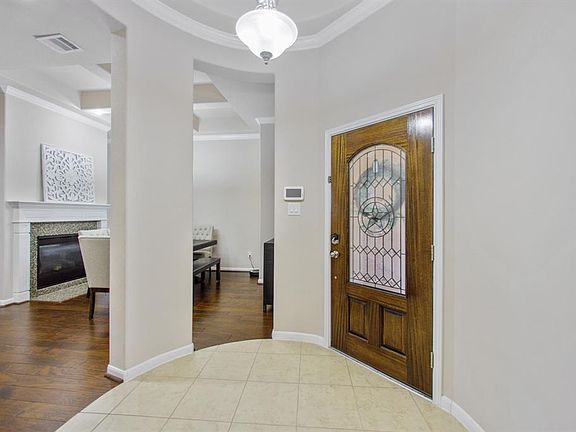 Come see your forever home in the highly sought after Towne Lake Subdivision. The beautiful brick & stone exterior is just the beginning. Step into a unique circular foyer leading to the open concept floorplan. Enjoy your double sided fireplace from both dining & family room! An eat in kitchen features dynamic granite countertops, tile backsplash, recessed lighting, and a breakfast bar island, this 1.5 story has it all. Enjoy the backyard view from the privacy of your home office. The Primary bedroom boasts an ensuite bathroom with dual sinks, granite counters, garden tub, separate shower, & a walk-in closet! Hang out in your massive upstairs game room with its own private bathroom, or head outside to a large covered patio & big backyard. No back neighbors! You will love this master-planned community featuring walking distance lakes and schools, multiple playgrounds, pools & walking trails. Builder upgrades include a tankless water heater, PEX piping throughout, and so much more.