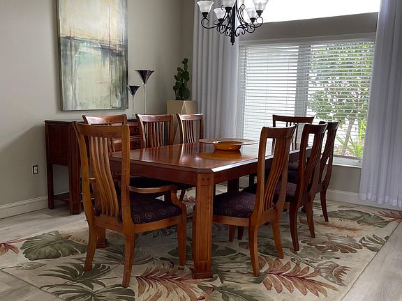 Fully furnished, Stunning Solar Heated Pool Home located on a cul-de-sac in great Riverclub. Custom Kitchen is filled with Stainless Steel Energy Saving Appliances and Gorgeous Quartz Countertops. The very open floor plan lets you enjoy a large gathering area and the peaceful private landscape through many of the large windows throughout the house. Light Tile Floors with Light Brow Hardwood in All Bedrooms contribute to the allergy-free clean living. Large 3 bedrooms have 3 king-size beds for your comfort with plenty of closets. This property has 3 bathrooms with gorgeous Vanities, Quartz Countertops, Lights and plenty of Mirrors. Spacious 3 car garage. Fresh Paint In & Outside. Professional Landscaping included with the private yard. Large granite table on the covered pool deck sits 6 people looking over the pool and the large pond. Close to the Highway I-75 and the Beaches (Lido Beach, Siesta Key Beach and many more). Enjoy the Scenery while walking the trails or horseback riding. Spend the day on one of the many golf courses located nearby. Lawn and pool care included.
