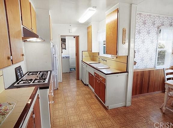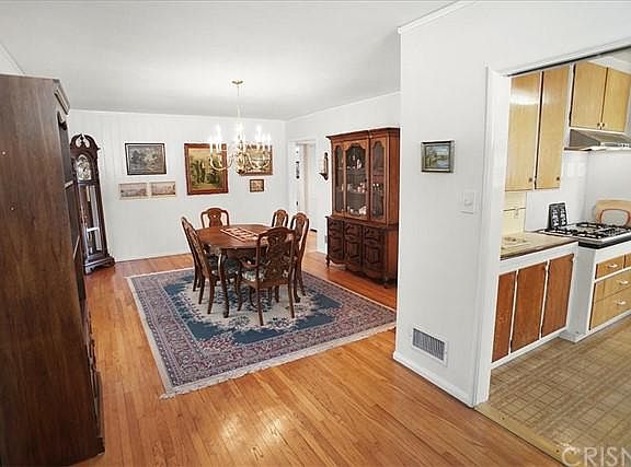 Welcome HOME! Wonderful single story 3 bedroom, 2 bath home boasting a charming brick front porch, 1,665 sq. ft. of comfortable living space on a large 7,352 sq. ft. lot with direct access 2 car garage and a large driveway for extra parking, and just minutes from shopping, dining and access to the 118, 405 or 5 freeways! This light filled floor plan features hardwood flooring, smooth ceilings, dual pane windows, central air & heat, crown moldings, an open living room and dining area and an amazing family room with wood beamed cathedral ceilings, a cozy brick fireplace, knotty pine wood walls and built-ins, and a bar area - perfect for entertaining family and friends. The sunny kitchen has a quaint breakfast area and a convenient service porch. All bedrooms are ample sized and have good closet space. The rear yard has a great patio area and room for a possible pool or more! This one is sure not to last long, see it TODAY!