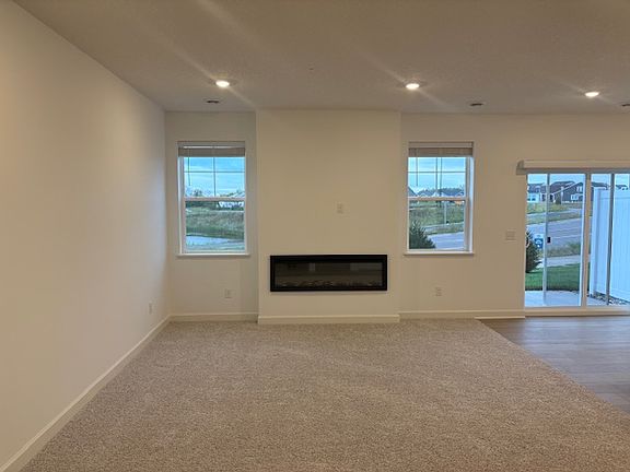 Center islandBack patioStylish electric fireplaceOpen layoutPrimary suiteStainless steel appliancesBeautiful kitchen cabinets