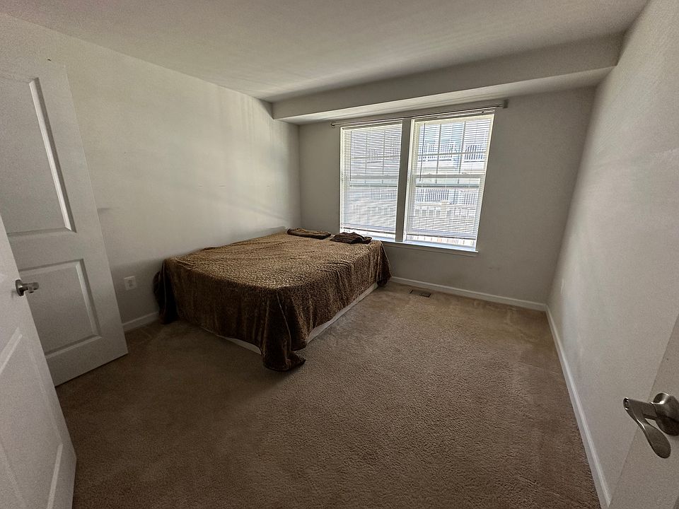 This is a room with a private, spacious bathroom. It has additional space for a living room in addition to a general shared living room downstairs, and a balcony. All floors are fully carpeted, and new appliances are installed throughout. It is a new condo townhouse in a very nice location between Greenbelt and Lanham.