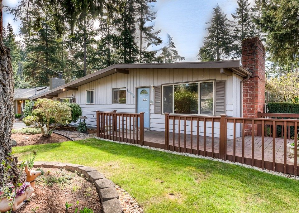 Welcome home to this charming rambler in the Forest Glen neighborhood. Relax on the front deck among towering trees and a beautifully landscaped yard. The large lot features ample parking out front with a gated entrance out back and plenty of room for your RV or toys. This spacious rambler is light and bright and features 3 bd, 1 3/4 bath, hardwoods, with both living and dining room fireplaces to cozy up to. Tucked back from the hustle and bustle and within minutes to DT Edmonds.