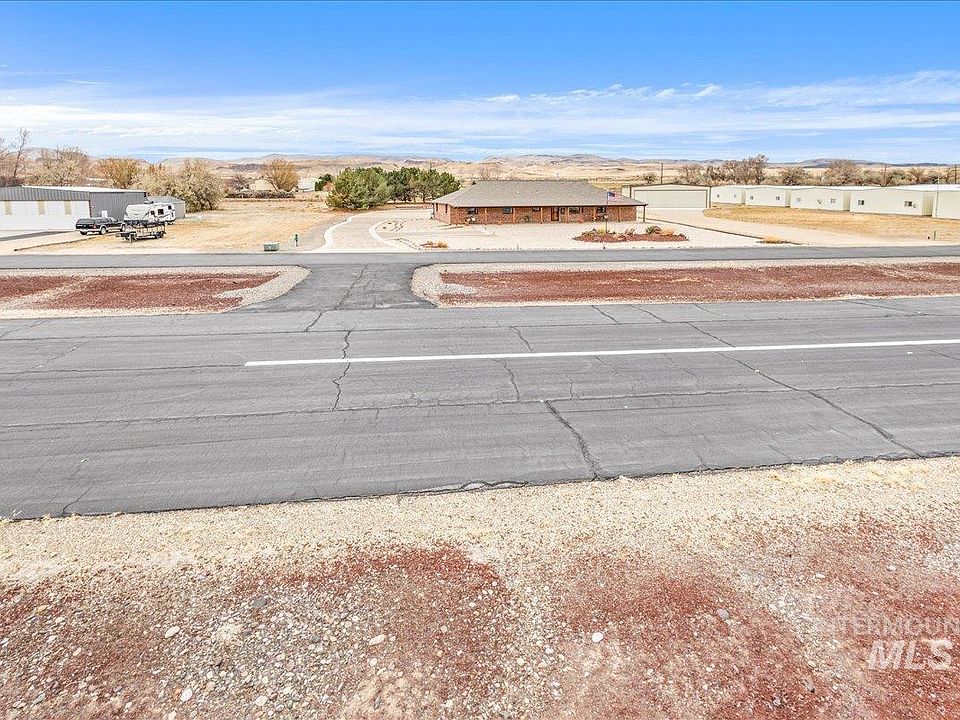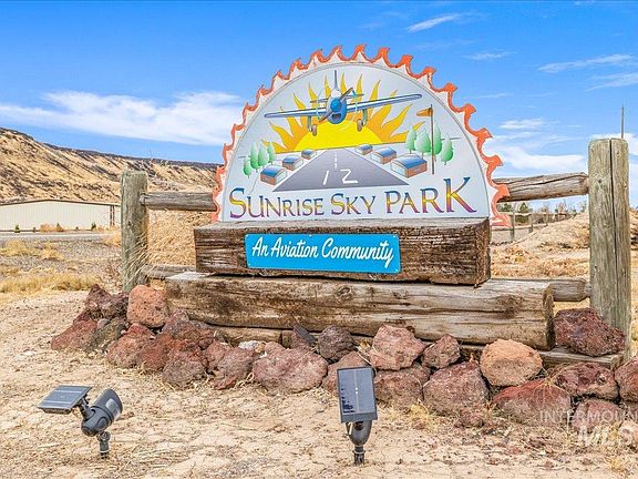 Adventurer's Dream Home! Experience Idaho living in this stunning home, complete with a 45x50 ft hangar situated directly on the runway, offering unparalleled access to Idaho’s breathtaking landscapes. Located in Sunrise Skypark, an aviation community, you’ll enjoy the community boat ramp and dock—perfect for hunting, fishing, and endless recreation along the Snake River as well as a community park overlooking the Snake River. For off-road enthusiasts, Hemmingway Butte’s dirt bike and OHV trails are just a 10-minute drive away. Step inside this meticulously maintained home, where the Snake River Canyon serves as the backdrop to your kitchen sink and dining room views. Boasting three spacious bedrooms with walk-in closets, an office, and two bathrooms featuring dual vanities, tiled floors, and beautiful cabinetry. The living room, complete with a propane fireplace, invites relaxation. Recent upgrades within the last 4 years include heat pump, a new well pump and assembly, and water softener.