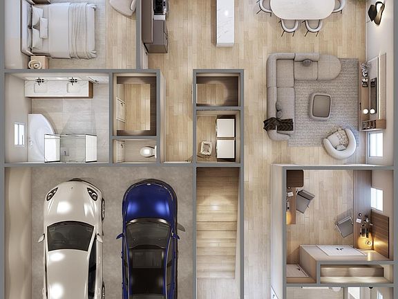 Contemporary cabinetryStylish paletteHigh ceilingsAbundant natural lightGranite countertopsOpen clean designSpacious game room