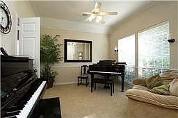 Welcome to this one of kind home in Gleannloch Farms! Two fireplaces & huge master suite, including separate sitting area, make this home truly unique. Add'l features of this open floor plan include gorgeous entry w/ laminate hardwood floors, dining room w/ chair railing/crown moulding, gourmet island kitchen has s/s appliances, spacious bedrooms/closets, & backyard w/ limitless potential including your future dream pool/spa. Amenities ~ 3 pools, kids splash pad, dog park, fitness center & more.