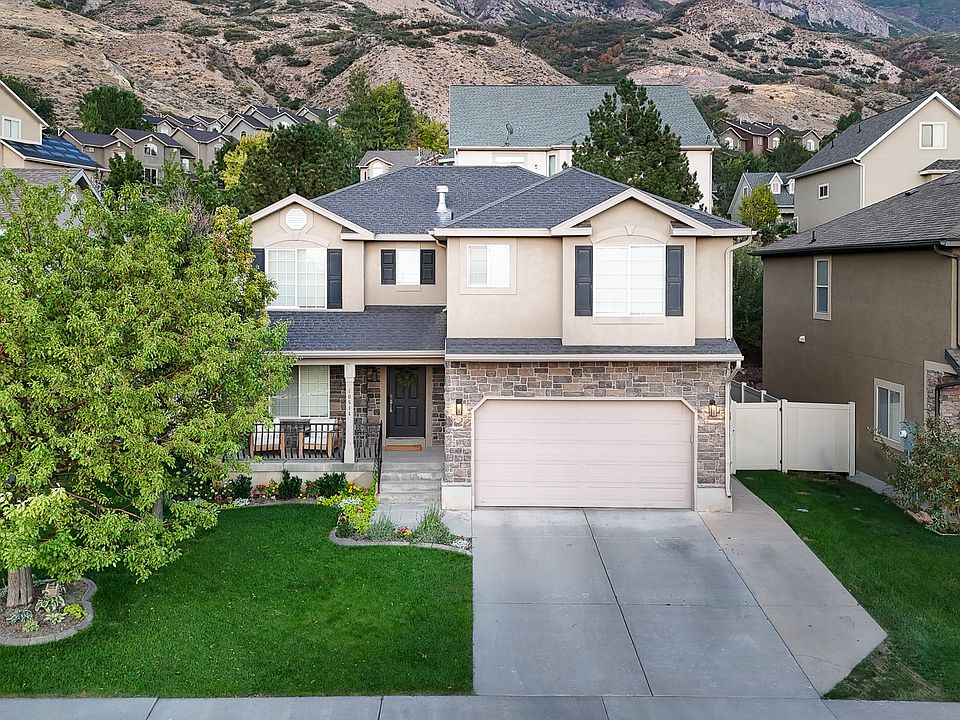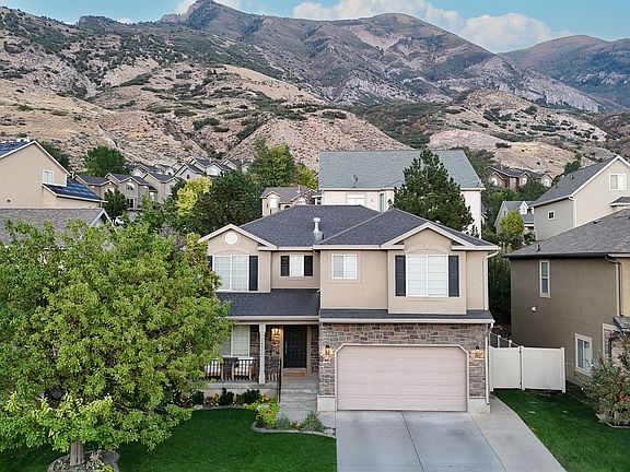 Beautifully updated Cedar Hills home with new LVP flooring on the main level, new carpet, fresh paint throughout (including ceilings, trim, and doors), new countertops, new fixtures, and added lighting for an elevated, bright feel. Natural light fills the home, and the updated kitchen and bathrooms make it completely move in ready. Enjoy a large primary suite with a new ceiling fan, plus 5 bedrooms upstairs and 7 total bedrooms, offering space for everyone. Situated on the golf course and on the mountain, this home is in a quiet, secluded neighborhood with frequent wildlife. Garden beds connected to the sprinkler system, plus peach and apple trees, enhance the outdoor space. New landscaping, added shelving, and a new wall with mantle provide thoughtful touches throughout. Prime location being less than 1 minute to the mouth of American Fork Canyon, 10 minutes to Tibble Fork and I-15, and walking distance to paved trails. Kids' park is on the same street. Epoxy garage floor with added lighting plus a dedicated storage room and abundant storage throughout. A truly rare Cedar Hills find!
