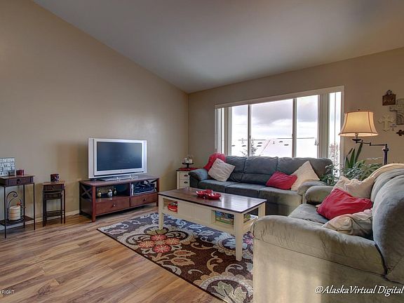Great South Anchorage townhouse updated w/laminate flooring, carpet and stainless appliances. Large master bedroom w/walk in closet, open kitchen w/breakfast bar, vaulted ceiling, cozy fireplace, balcony deck & large lower level deck. Plus views of Mt. Susitna & beautiful sunsets! Spacious floor plan. Fenced yard & deck. Easy access.