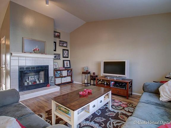 Great South Anchorage townhouse updated w/laminate flooring, carpet and stainless appliances. Large master bedroom w/walk in closet, open kitchen w/breakfast bar, vaulted ceiling, cozy fireplace, balcony deck & large lower level deck. Plus views of Mt. Susitna & beautiful sunsets! Spacious floor plan. Fenced yard & deck. Easy access.