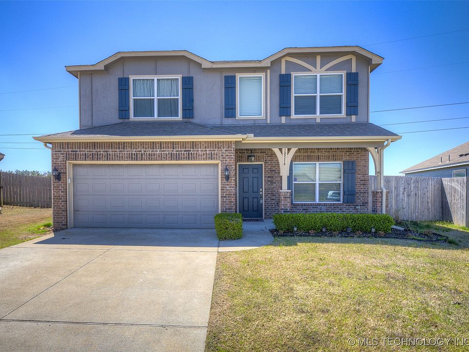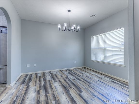 This amazing home has so much space!! Downstairs has high ceilings, an open living, breakfast & kitchen. Kitchen has So much to offer- gas stove with double ovens, TWO pantries, granite counters and eat-in bar or desk area. Not to mention new dishwasher, disposal and built-in microwave. A formal dining room, nice sized laundry and half bath complete the downstairs. The whole downstairs has new vinyl wood flooring. Upstairs opens to a great game room or den area. Split bdrm plan for more privacy. All bdrms have walk-in closets. Master is large enough for an office area and has ensuite bath with a new cultured marble step in shower, double sinks and large walk-in closet. The other 2 bdrms and full bath come off the other side of the game room. New interior paint and light fixtures through out. Fenced backyard with lots of space to play, backs to greenbelt open space. Jenks School District. Community has a wonderful pool/pond/playground/dog park.