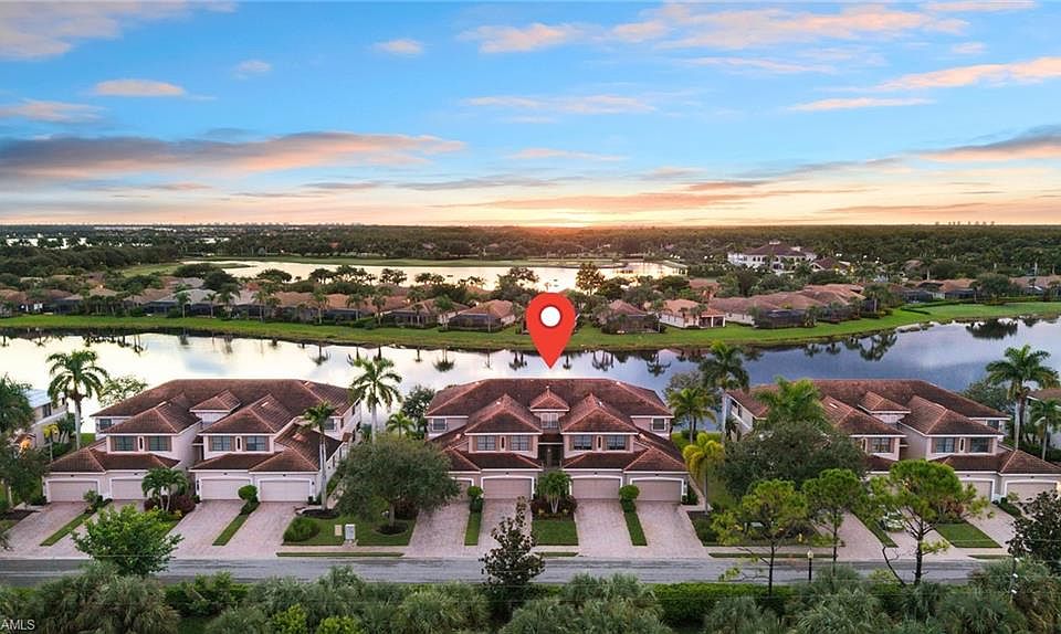 Enjoy the world-famous Naples sunset on your oversized lanai every night from this second floor, "Oleander" model Coach Home at Heritage Bay, Naples' premier bundled golf community. With 3 spacious bedrooms, 2 full bathrooms and an oversized, attached 2-car garage, you have as much room as a single family home, without all of the maintenance and hassle! Upon entry, you'll immediately notice how this coach home is in absolutely immaculate condition; only one owner that is extremely meticulous. This unit is so pristine that the photos almost look fake. The living room is fully carpeted, which is very rare and makes it extremely easy and affordable to replace with LVP wood-like flooring if you choose. Most furniture is negotiable; see list of exclusions. The roof is currently being replaced, paid by reserve funds- no assessments! Upgrades included fully tiled back lanai, crown molding, stainless appliances, large diagonal tile in kitchen and bathrooms. Heritage Bay features a stunning 27-hole Lewis-Azinger designed golf course and aqua driving range. The grand clubhouse offers diverse dining options, elegant event spaces, and a lively social scene. Have a bite to eat in The Grille Room— a casual indoor/outdoor bar & dining area, with an incredible southern view of the 27th green. Members can also enjoy a resort-style pool area with heated spa & 'The Cabana' poolside bar & grille with a full service kitchen. The community also includes a top-notch tennis program with 7 har-tru clay courts, pickleball & bocce courts, and a state-of-the-art fitness center. With a calendar full of events and activities, Heritage Bay ensures a vibrant and luxurious lifestyle for its members. Whether you're a golf enthusiast or simply looking for serene views and luxury living, Heritage Bay offers it all. 2019 special assessment for amenities renovations paid in FULL