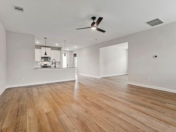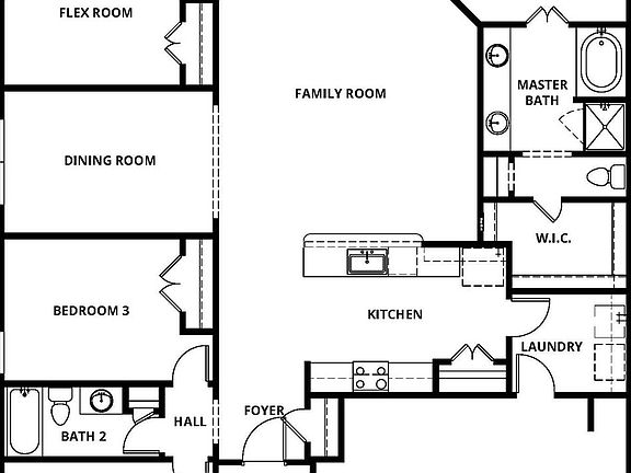 The 4-bedroom, 2-bath Houghton showcases an incredible layout allowing you to easily flow from room to room. The large family room is located at the heart of the home offering the ideal space for gathering with friends and family. Large windows along the back of the home offer views of the covered outdoor living area and your beautiful backyard. Homeowners will appreciate the spacious master bedroom, large enough to accommodate your entire bedroom suite, as well as the beautifully designed bathroom featuring a dual-sink vanity, a relaxing soaker tub and an impressive shower. Additionally, a huge walk-in closet provides enough room to store clothing for every season.