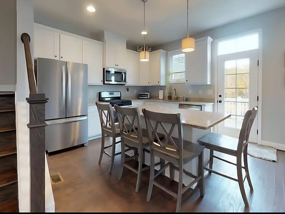 Open plan living designOpen living spaceStainless appliancesPristine end unit townhomeFour bedroomsGreat views from deckGranite in the kitchen