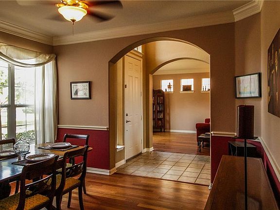 Backyard Oasis in the sought after Waterview neighborhood. Golf course lot with beautiful pool that is gated with wrought iron. Stone, brick, and siding adorn the exterior. Soaring ceilings with lots of natural light. Spacious kitchen with tons of counter space for entertaining. Downstairs bedroom with bath. New roof, dishwasher, and hot water heater. Built-in desk, fireplace-gas starter, storage galore, 2 pantries, wood floors, Corian counters, gas cooktop, ceiling fans, and built-in microwave. Breakfast bar and oversized 2 car garage. A planned community with jogging trails, parks, golf, waterpark, tennis courts, and fishing ponds. This is a great place to call home!
