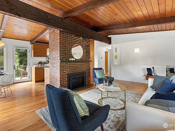 2 words "SUPER COOL"! Architect designed restored/remodeled mid-century modern home composed of unequalled quality, detail & personality! Open beam ceilings, walls of windows (flooded with natural light). Wonderful remodeled gourmet kitchen. Formal dining room. 4 bedrooms 2 newer baths. Daylight lower level with custom finishes & perfectly anoited spaces creating a transformative modern living experience. Most systems updated. Oversized 2 car garage with loft storage. Spectacular large level lot is a park like setting (great indoor-outdoor use of spaces with deck & patio). Sought after location only minutes to downtown, Amazon, Children's, UW & 520. This sublime residence offers every conceivable amenity for modern day living@ its finest