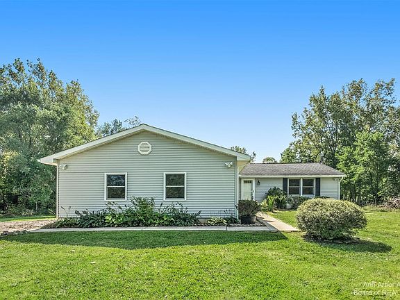 Offers due by 5pm on Thursday, 9/30! This modern ranch home on 7+ acres is the perfect mix of city and country just a quick drive from Dexter, Chelsea, and AA! There's plenty of room to farm, build, and appreciate the serenity of the surrounding natural spaces. Upon entering, you'll find the bright living room open to the dining room & kitchen, all with vaulted ceilings. The dining area also offers a doorwall to the deck overlooking the yard - perfect for grilling and summer entertaining. The kitchen provides ample cabinet and counter space with newer SS appliances. There are 3 bedrooms on the main level, including the primary suite with WIC & private full bath. Two more sizable bedrooms share a second full bath, and a generous laundry/mud room connects to the 3-car garage and provides extra storage. Fresh paint and warm wood floors mean you can move right in and enjoy. Full LL has been partially finished with an expansive rec room with daylight windows, a private study/4th bedroom with French doors, and an unfinished storage/mechanical room. Outside, the deck & patio overlook a large yard with plenty of space to add gardens or a pool. To the west is a second tilled area for planting or future expansion.
