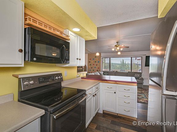 It is hard to beat a year round home with a view of Harding Lake for interior Alaska living! This three bed, one bath, two car garage home is just waiting for new owners. Enjoy the open and comfortable kitchen, dining and living area while you snuggle around the wood stove or during our beautiful summer days retire to the absolutely enormous deck for dinner and conversation with friends. The property offers a ton of storage – take your pick of either of two connex storage containers (one with electricity) or the dry storage in between. Of course, the garage is oversized for two cars anyway so there is more room to store there, too. The largest bedroom is removed from the others and has private access to a screened in portion of the deck. The house has been used an a bnb in the past and the furnishing are negotiable.
