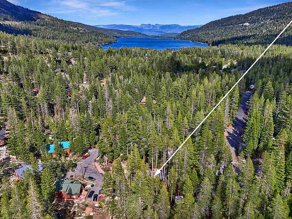 Beautiful handcrafted custom built log home backing up to miles of trails at the desirable West end of Donner Lake- close to the West End and Private Beach at Donner Lake! Hand-crafted by a local contractor in 2015, this home exemplifies quality and attention to detail. On the main floor is the Great Room with soaring ceilings, two bedrooms and bath, upstairs is the spacious landing with laundry area and the large primary suite. Features include cherry wood cabinets, beautiful barn doors, hand-crafted windows and staircase, hickory and slate floors, Hand-forged stair banister, upgraded lighting fixtures, hydronic heating, gas stove, wireless sound system. This property backs up to acres of forest with trail systems. Beautiful stone patio for wonderful outdoor entertaining, 2 spacious sheds for storing all your toys. A quick golf cart drive to Donner Lake!