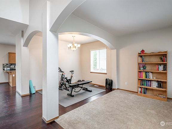 Welcome to this beautifully maintained home in the desirable Yelm Terra neighborhood! This 4-bedroom, 2.5-bath offers spacious comfort and modern features throughout. Enjoy expansive rooms, including a front room flowing into a formal dining area and spacious living room with a cozy gas fireplace. The open-concept kitchen always keeps you part of the action! Primary suite features a walk-in closet with French doors and a luxurious 5-piece bath w/ a soaking tub. Additional highlights include newer carpet, hardwood flooring, A/C, a 2-car garage with epoxy flooring, and a large backyard with no immediate rear neighbors for added privacy. Conveniently located near schools, parks, JBLM, & shopping - This home is ready for YOU to move in!