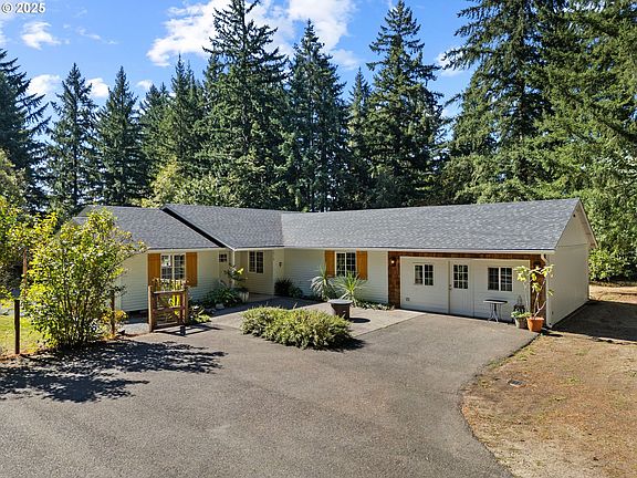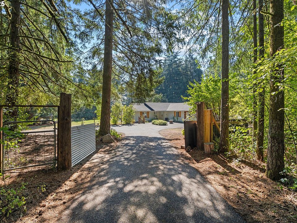 AMAZING LEVEL ACREAGE in HOCKINSON! And if you love the sound of water or the thought of fishing in your own pond, you’re going to love the stunning koi ponds and water features with landscape lighting designed by a local pond expert! Discover 3.35 beautifully level, gated, and private acres at the end of a quiet paved drive. This inviting 3-bedroom, 2.5-bath home also has a charming studio set peacefully among the ponds and waterfalls – what a wonderful place to make into your office or hobby shop or just ponder life! The floor plan of this home is thoughtfully designed with separation of space: the ground-level primary suite and two additional bedrooms with two baths are in one wing, while a private guest suite with heated floors and a sitting room creates the perfect retreat on the other side of the home. The oversized garage has been finished into a fully insulated workshop (garage door header remains in place for easy conversion), providing endless options for hobbies or storage. There's plenty of room for RV parking and no CCR's or HOA. Several outbuildings enhance the property, including a greenhouse, raised garden beds, and additional structures for tools. Outdoors, the property shines with a seasonal creek along the southern border, beautiful meadows, perimeter trees that ensure complete privacy and a New Roof! A new heat pump is included in the price. Enjoy amazing well water, a bountiful fruit orchard and berries galore.It’s Heaven in Hockinson—quiet, private, and level land ideal for gardening, recreation, or simply soaking in the peaceful surroundings. Just 10 minutes to top-rated Hockinson schools and only minutes more to Costco, shopping, and all the amenities.