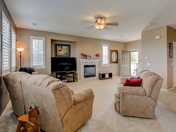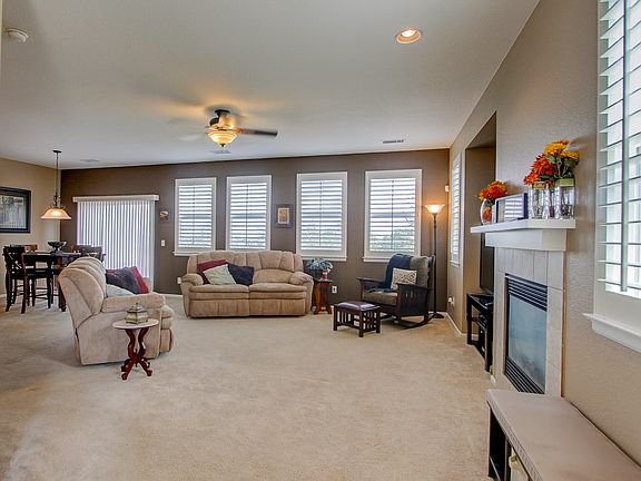 This beautiful home in Highland Walk is waiting for you. It has an open spacious feeling with the living room, dining area and large kitchen with eating counter space all on the main floor. The first level has a warm and inviting large living area with decorative paint, white shutters, gas fireplace and pretty mantle. The dining area has a sliding door to your large patio for great outside dining and entertaining. It has a great location, is a corner lot surrounded by greenbelt, trees and nature. The kitchen includes all appliances and has ample cabinets and pantry. There is a high counter top for additional dining and serving space. There is new laminate flooring throughout the main level and new carpet on the upper level. Several rooms have been painted which makes this a move in ready home. Upstairs there are three bedrooms. The master bedroom is quite spacious and connects to a beautiful five piece bath with new lighting and walk in closet. The upstairs rooms can be used as bedrooms or office space. The owner has lovingly cared for this home and has had the heating system, fireplace and air conditioning units serviced and checked just before listing. Highland Walk is a beautiful, well kept community. You can walk to restaurants, Starbucks, grocery stores and community parks. Enjoy the good life and welcome home!