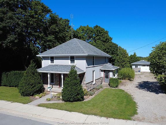 Advertisements often say "great family home" - This offering in Louisville can back that claim. Country farmhouse charm and a beautiful addition are the perfect combination for this 5 bedroom, 3 bath beauty. A 2 storey home with the benefit of a 15 yr old family room addition (fireplace), 3pc full bath, main floor primary bedroom complete with a terrific ensuite and walk-in closet. Large eat-in kitchen with cherry cabinets, front living in the original section with natural trim and formal dining. Side entry into an office area or excellent space for a mudroom. Upper level with 4 bedrooms and 3 pc bath with clawfoot tube. New basement under the addition provides for storage/hobby room, laundry with tankless water heater, forced air gas furnace and ac. Hardwood and ceramic flooring, decor that suits the character, updated plumbing and wiring this home has been well updated and cared for. The nearly half acre site is only 8km to the City of Chatham and has cedar and mature trees backing onto farmland for additional privacy. Interlocking brick patio area located from the patio doors plus a secluded firepit area in the back corner of the lot. 19' x 29' attached garage or workshop is heated and insulated. This home has over 2200 square feet and the additional rooms on the main level really enhance this wonderful home.