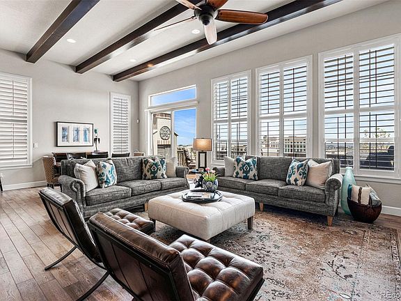 Magnificence In Montecito! Do Not Miss Your Opportunity To Tour This Spectacular Custom Home Before It Is Too Late! Upon Entering The Home, You Are Immediately Greeted By The Open Floorplan, Natural Light, And Immaculate Finishes. Two-Panel Doors, Wrought Iron Balusters, High-Quality Luxury Wood Flooring, Plantation Shutters, And Large Windows Are Found Throughout The Home. The Great Room Boasts High Ceilings, Built-In Shelving, Overhead Beams, Plantation Shutters, A Magnificent Gas-Burning Fireplace With Luxury Tile Surround And Large Mantel, Dining Space, And A Slider Door Directly To The Second-Story Deck (City Views) - The Kitchen Has Stainless Steel Kichen-Aide Appliance Set With Oversized Refrigerator, Double Ovens, Ample Storage, Pendant Lighting, Large Pantry, Kitchen Island, 6-Burner Gas Range With Hood, And Granite Countertops. The Master Suite Faces East And Has Spectacular Views And Tons Of Natural Light - Master Bath Has A Massive Walk-In Closet, Split Sinks (With A Makeup Station), Large Shower With Dual Shower Heads, Freestanding Tub, Water Closet, Linen Closet, And Tile Floors. The Second Bedroom Is On The West Side Of The Home And Has Its Own Ensuite 3/4 Bathroom. Main Floor Office Has Hardwood Floors And Vaulted Ceilings. Main Floor Powder Room And Laundry Room (Samsung Washer And Dryer Included). Downstairs, The Walk-Out Basement Has Been Custom-Finished. The Basement Is Perfect For Entertaining With The Large Family Room And The Finished Wet Bar. The Bedroom Downstairs Has Full-Size Above Grade Windows And Is Near The 3/4 Bathroom. Exercise Room Has A Built-In Murphy Bed That Is Included With The Home. Do Not Miss The Fantastic Workshop Downstairs. Three-Car Garage With Professional Floor Coat. Plentiful Storage. Beautifully Landscaped And Fenced Yard With Terrific Views. Private Community Pool. Easy I-25 Highway Access And Near Shopping And Entertainment In Lone Tree.