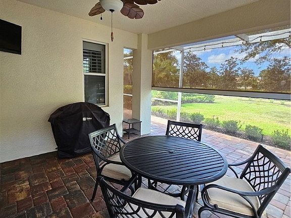 Breakfast islandPaver extended lanaiGas grillTile flooringSeparate dining areaWood plank flooringPlantation shutters