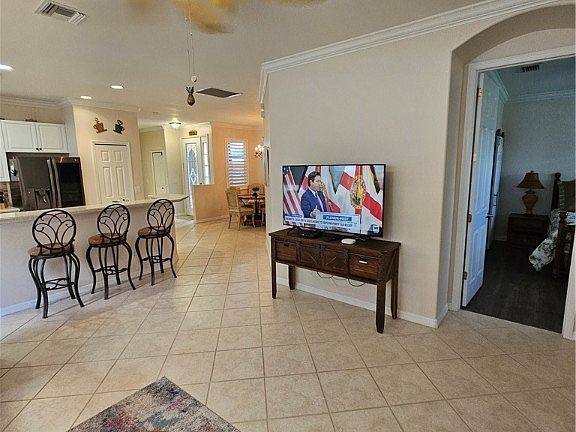 Pet friendly and Available through Nov 30 2025 or March and April 2026 with a 30 day minimum. Book by July 15 for 2026 Season discount - Lease for 6 Months Get last month free month and no taxes required (over $9000 in savings). Voted one of the top 55+ communities in the country. Enjoy Paradise and work from home. Turnkey 2 bedrooms +Den, 2 Bathroom 2 Car Garage home. Beautifully decorated with tile flooring throughout home and wood plank flooring in bedrooms and den. Kitchen with stainless steel appliances, cube glass, breakfast island and additional side entry. Separate dining area great for having guests over for dinner. Gorgeous Master bedroom with extended windows, king bed, barn slider, plantation shutters and large walk in closet & beautifully tiled master bathroom step in shower and his and hers sinks. Guest bedroom with queen bed, plantation shutters and over bed block windows for your guest to greet the Florida morning sun. Den/office has futon and desk. Pocket sliders from living room lead to peaceful paver extended lanai with picture screen and remote controlled storm screen, gas grill, outside TV perfect for evening entertaining. Sink in Laundry Room. Pelican Preserve offers a 70,000 sq ft. Town Center 2 outdoor pools & indoor lap pool with walking track, pickleball tennis spa fitness center 2 restaurants craft, sewing & woodworking room billiards room theater, exercise classes bingo nights, card rooms, outside amphitheater, nature walk with preserve boardwalk, & more. Monthly rental includes water and electric w/cap, cable & internet, tenant to pay 11.5% tax. Available June - November $2400 per month plus taxes and fees. Utilities Included. March and April 2026 - $6500 per month +taxes and fees includes utilities or March only $7000. Leases 6 months + a day, get last month free and no taxes required.
