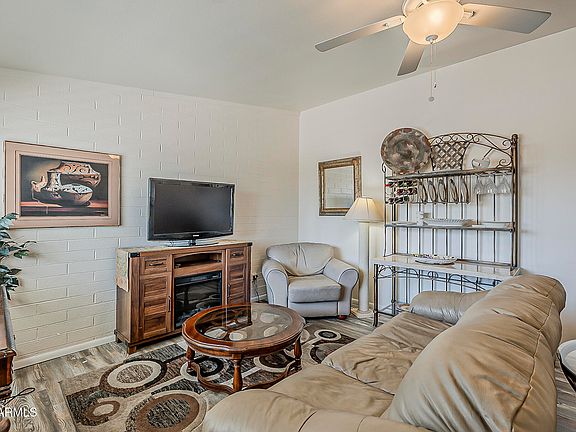Beautiful Remodeled home. This desirable end unit features an open floor plan with Valuted cielings and abundant natural light. The kithchen was upgraded in 2024 with over 20,000 in enhancements. It included White Shaker cabinets, sleek counter tops and breakfast bar. Unwind in the Kohler hyrotherapy spa tub, a luxurious addition, purchased for $26,000 in 2024. It is perfect for relaxing after a long dayThe high boy toilet and vanity complete the updated bathroom. The bedroom features a sliding glass door that opes to your private patio. The home also includes plantation shutter, laminate flooring ( no carpet), a convenient indoor laundry area and a 1 car garage. Close to recreation and shopping. Furnitur can be purchaed on a separate bill of sale.