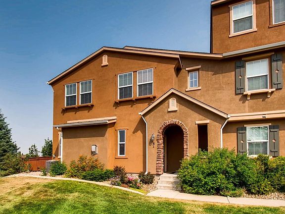 Beautiful townhome-style condo w/incredible mountain views out every window! Located in the sought after Highland Walk Community in the heart of Highlands Ranch, you'll enjoy the convenience of close by shopping, recreation centers, trails, parks and more. New exterior windows, roof, paint, and stucco in 2017. Inside this well-maintained 3 bd 3ba home you are greeted by an open floor plan, vaulted ceilings, and an abundance of natural light. The kitchen features newer stainless steel appliances and freshly refinished cabinets w/oil rubbed bronze hardware. On the main level you will find a separate laundry room w/extra storage space. Upstairs features 2 bd, a bathroom, and a king-size master suite w/5-piece bath, spa-like garden tub, new shower door, double sinks, and walk-in closet with shelving. Fresh paint and newer carpet throughout. Spacious tandem garage w/storage shelving. Take in stunning sunsets and mountain views right from your own large patio. Book your showing today!