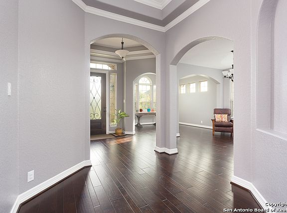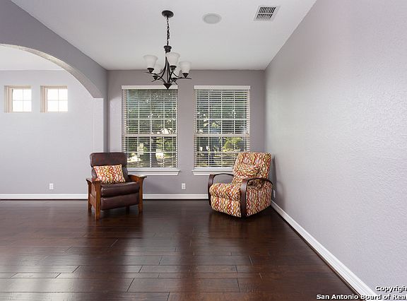 Come view this gorgeous 4 bedroom, 3.5 bath single-story home in the quiet Triana subdivision. The home is located adjacent to the community pool & park. This home is sure to impress with its many upgrades to include wood flooring, surround sound, whole-house speaker system, granite counter tops and much more. With no neighbor to the left and a green belt at the rear, you are sure to have lots of privacy. The island kitchen, open floor plan and covered patio make this home perfect for entertaining guest.