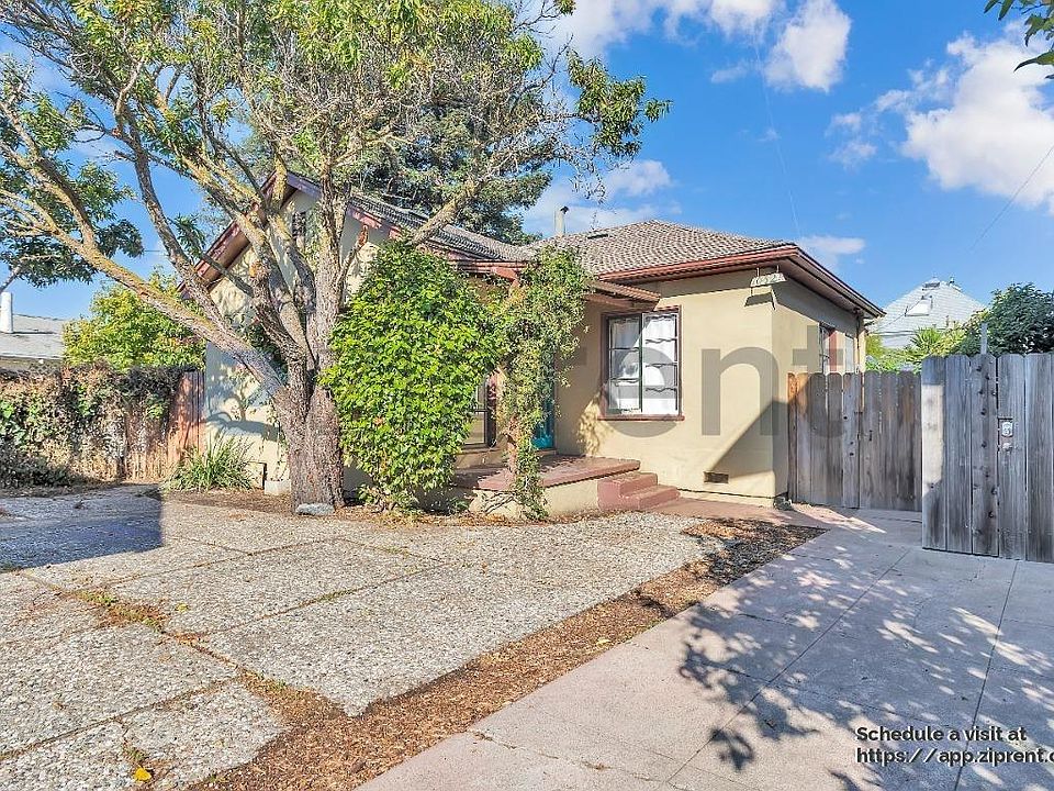 Welcome to 1052 45th St, Emeryville, CA 94608 - Unit B, a charming rear house offering a perfect blend of vintage charm and modern conveniences. Nestled in a tranquil setting, the exterior of the home boasts a quaint entrance framed by lush greenery, providing a serene and inviting atmosphere. The spacious driveway and fenced yard offer both privacy and ample space for outdoor activities.