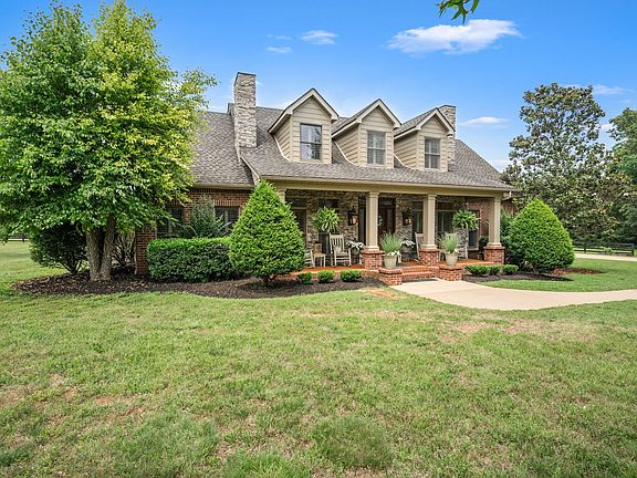 Step into a home that blends comfort, charm, and practical upgrades in all the right places—set on 5 usable acres with fenced pastures ready for your animals. Septic permit is for 3 bedrooms. Home has 4 rooms that may be used as bedrooms, but only 3 are permitted for septic use. Floorplan in pictures. Tucked away at the end of the road with no backyard neighbors, this property offers privacy galore and peaceful surroundings. A versatile 3-bay outbuilding provides plenty of room for the boat, ATVs, and your recreational gear, adding to the everyday convenience of this beautifully maintained home. /// Inside, enjoy hickory hardwoods, plantation shutters throughout, and a kitchen with double ovens and soft-close cabinets. The kitchen is designed for everyday ease and entertaining alike, featuring double ovens, soft-close cabinetry, a farmhouse sink, walk-in pantry, and durable commercial-grade flooring. New paint on all trim, doors, and ceilings just prior to listing so you'll find no smudges or fingerprints here! /// Enjoy meals in the spacious formal dining room, then unwind on the newly added screened porch—accessible from both the kitchen and the primary bedroom. An adjacent patio offers the perfect spot for grilling and outdoor gatherings. /// The main-level primary suite offers comfort and privacy, while two upstairs bedrooms are joined by a Jack-and-Jill bath and feature built-in study nooks. New carpet upstairs was installed days before listing. The mudroom entry off the garage includes a convenient half bath, and the laundry room is well-appointed with a sink, cabinets, and hanging space. The walk-in attic provides incredible storage potential. /// Freshly painted walls and ceilings, new gutters on the back of the home, and thoughtful design throughout make this home move-in ready!