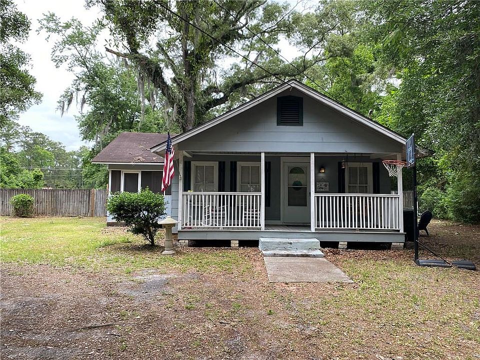 Charming cottage that is centrally located with enormous potential! This home offers hardwood floors and an updated eat in kitchen with open shelving. ALL appliances to stay-including washer & dryer! Oversized laundry room off of the kitchen with access to the large fenced in backyard for plenty of privacy. Plumbing & electricity are available in the screen porch off the master. Seller initially intended to add a 2nd bathroom there. Not in a flood zone so flood insurance NOT required!