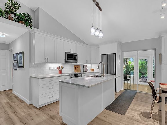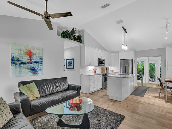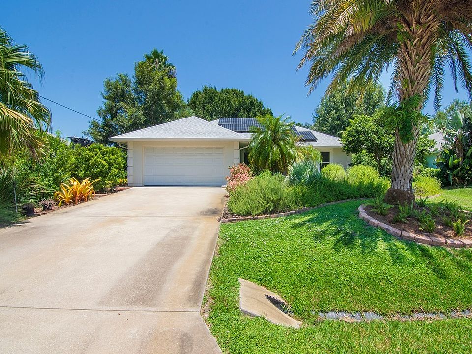 The seller's vision for this CBS 3 bed, 2 bath home was the marriage of a comfortable, modern living space with super energy efficiency. That goal has been achieved in style. The paid-off Solar System runs the whole home and keeps the EV car charged all for about $30/month and is rated to withstand high winds. A new High-Efficiency AC and insulated impact windows, both new in 2023, control cooling costs. Fully updated, w/quartz & stainless kitchen, updated baths, newer flooring, 2019 Energy Star roof and drought-resistant native landscaping.