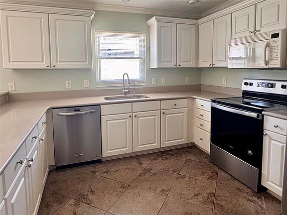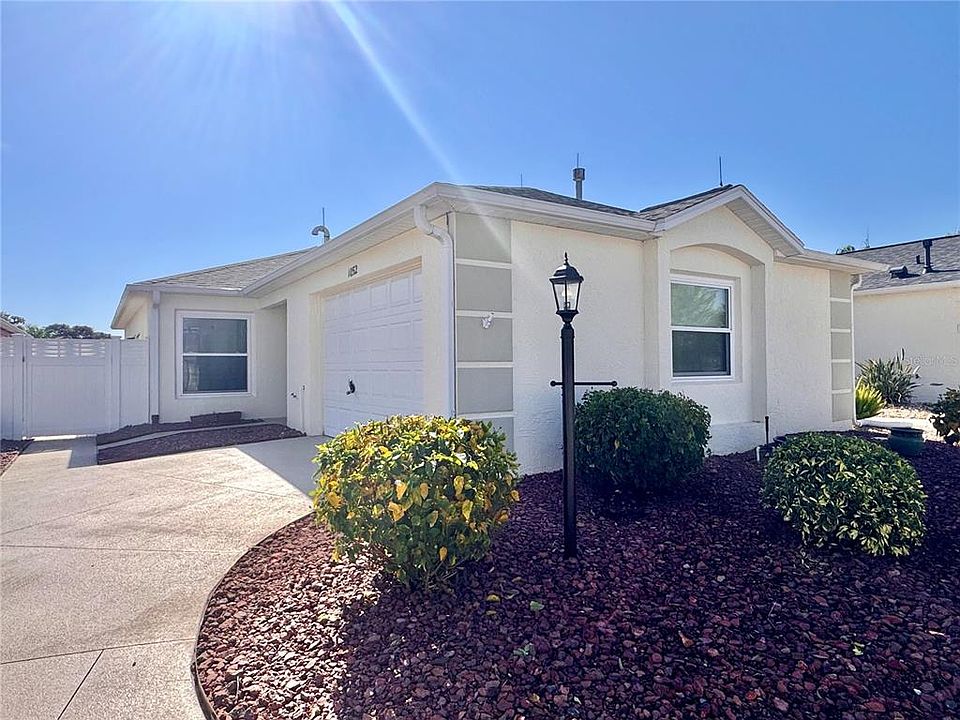 Welcome to this beautifully maintained 2-bedroom, 2-bath Woodlawn Courtyard Villa located in the highly desirable Village of Virginia Trace. This home offers one of the most impressive settings you’ll find, with a stunning water and golf course view enjoyed right from your covered and screened lanai. The fully fenced courtyard provides privacy while still capturing the picturesque backdrop of the lake and fairway, creating a truly peaceful outdoor retreat.Inside, the home features an open layout with no carpet, attractive flooring throughout, and a bright, spacious living area. The kitchen opens nicely to the dining and living spaces, making it ideal for everyday living or entertaining. The oversized garage is another standout feature, complete with checkered flooring, a utility sink, and a tankless water heater for added efficiency and convenience. With NO BOND, low-maintenance landscaping, and an unbeatable location just minutes from Lake Sumter Landing, recreation centers, golf, and pools, this villa offers exceptional value. Enjoy beautiful views, a fantastic neighborhood, and the convenience of being close to everything—this is Florida living at its best. Call today!!!