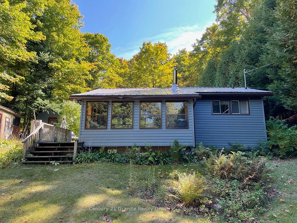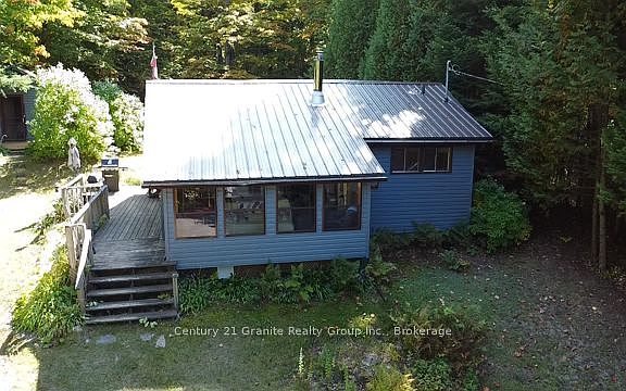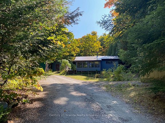 Great 4-season cottage, just steps to access to fantastic Miskwabi Lake with sand beach and dock! Good privacy, with almost an acre of forested land, located on a quiet dead end road. Recent upgrades include newer roof, siding, updated kitchen cupboards and bathroom fixtures. Open concept living/kitchen/dining area with vaulted ceiling, and walkouts to deck and sunroom. There are 2 bedrooms, plus a great bunkie with its own deck. Propane fireplace and electric baseboard heat. Laundry/utility room off kitchen. Drilled well and full septic system. 12x8 shed for storing tools and toys. As a bonus, the owners have the use of a shared dock on Miskwabi Lake, just a short walk up the road (contact listing agents for details). Plus there's access to extensive trails nearby. Miskwabi Lake is part of a superb 2-lake chain with Long Lake, renowned for clear waters, miles of boating and lake trout fishing. Located on a year-round Municipal road, just 20 minutes to Haliburton village for shopping and services.
