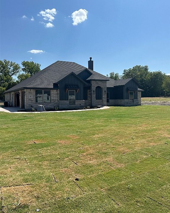 Best selling DOC Homes' floor plan on 2 acres in Brock ISD! NO WATER BILL!! Formal entry with stained wood barrel ceiling greets you as you walk into this open concept, split bedroom home. Our Grayson floor plan includes 5 bedrooms PLUS a 6th flex space that can be a formal dining or office! Large living area with stone fireplace and wood beams in boxed ceiling. Half bath has direct access to the back patio for when you add your pool! No detail overlooked in this country stunner!. CHICKENS ARE ALLOWED! Builder is contributing $10,000 that can be used to reduce your rate and lower your monthly payment! Come see why Brock is THE place to be!!