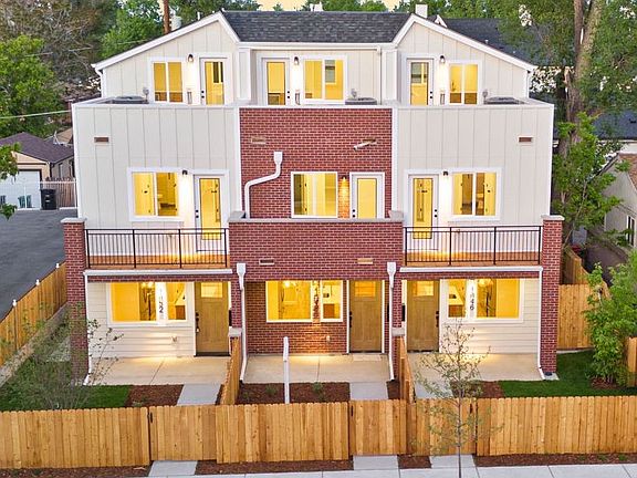 This transitional-modern townhouse blends warmth, sophistication, and functionality in every detail. The open-concept main floor is designed for everyday living and effortless entertaining. Real, site-finished oak hardwood floors throughout, complementing the custom oak kitchen island and staircase. The kitchen features an 8-foot quartz island with plenty of seating, open shelving, a built-in range hood and a countertop cabinet perfect for hiding your coffee station along with a spacious walk-in pantry. The primary suite features a balcony, double vanity, walk-in shower and double closets. Laundry is located on the same floor as well as the 2nd bedroom with a Hollywood bath. The 3rd floor offers even more flex space with a wet bar and huge 180 square foot rooftop deck with city views. Fantastic location: steps away from the light rail station offering a 10 min ride to Union Station, short distance to Sloan's Lake Park, dining and restaurants; even a walk away from Mile High Stadium for game day! Builder and lender incentives to fit the buyer!