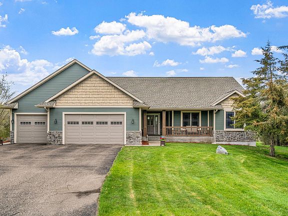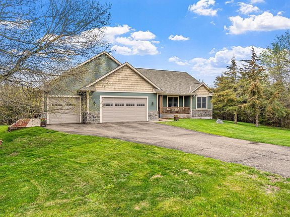 Welcome to your serene oasis! This spacious 5 bed, 4 bath walkout rambler boasts a large 3-car garage and sits on a private 2.8-acre lot. Step inside to discover hardwood floors, a new stainless steel kitchen appliance package, and a cozy living room with a gas fireplace. The main level features a large master bedroom with en suite, two additional bedrooms, and a spacious laundry room. Outside, enjoy the tranquility of your backyard surrounded by trees, complete with a large deck perfect for relaxation. Recent updates include a brand new roof, shed, and high-efficiency HVAC system (see full updates list in supplements). Head downstairs to the finished walkout lower level, featuring a dry bar, family room, two more bedrooms, and a new finished flex space. Just 2 miles from Willow River State Park, offering a plethora of outdoor activities year-round. Nestled in a peaceful neighborhood, yet conveniently located just 8-15 minutes from everything Hudson has to offer.